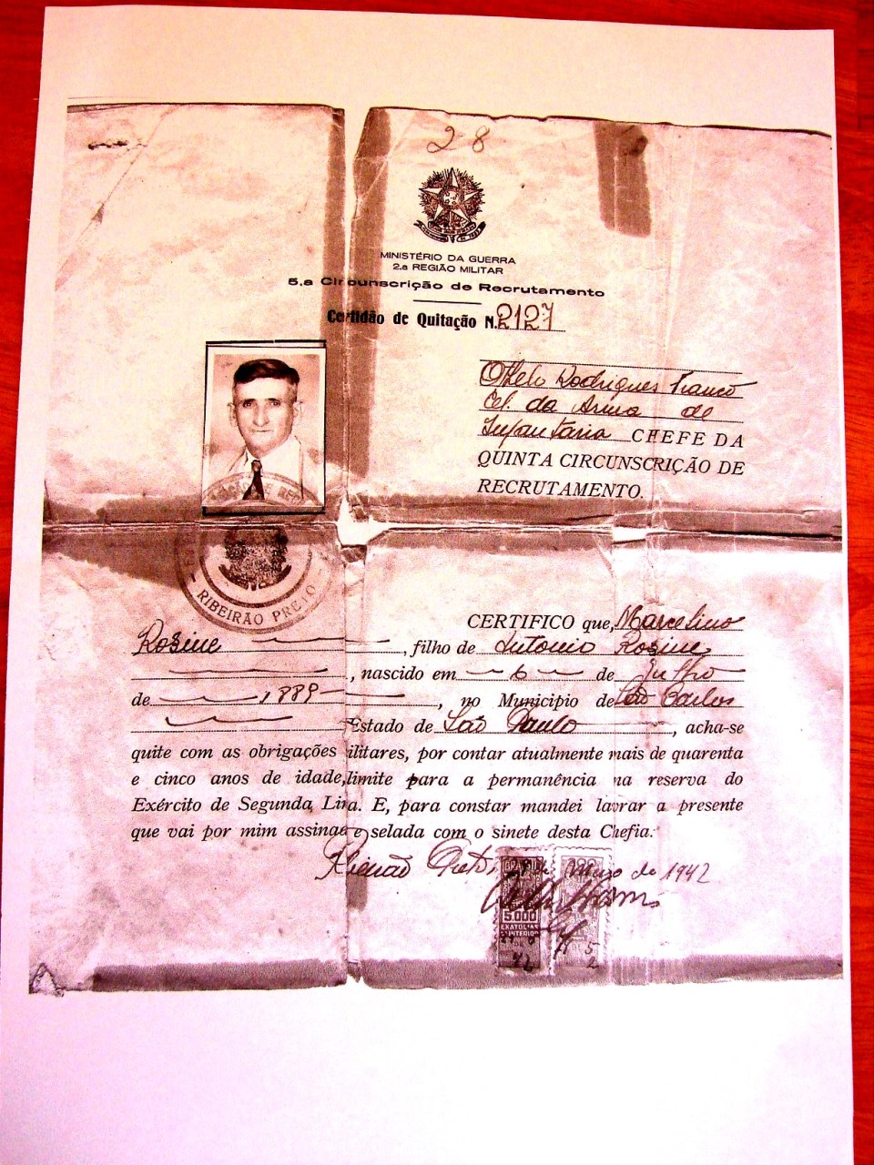 Marcelino Tinos Rosim *6/7/1889 – São Carlos, son of (filho de) Antonio Rosin & Anna Maria Tinos –