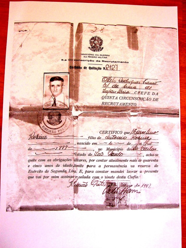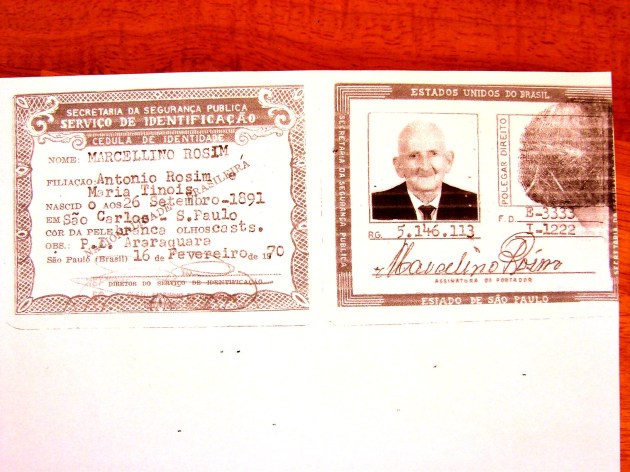Marcelino Rosim *6/7/1889 – São Carlos, son of (filho de) Antonio Rosin (Rosim) & Anna Maria Tinos – ID – RG 5.146.113.