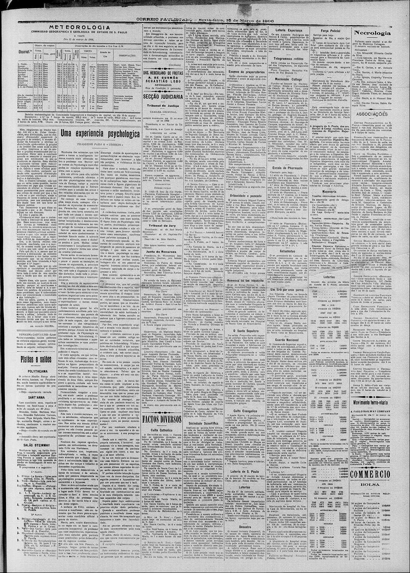– Newspaper (Jornal) Correio Paulistano – 16/3/1906, São Paulo, Brasil.