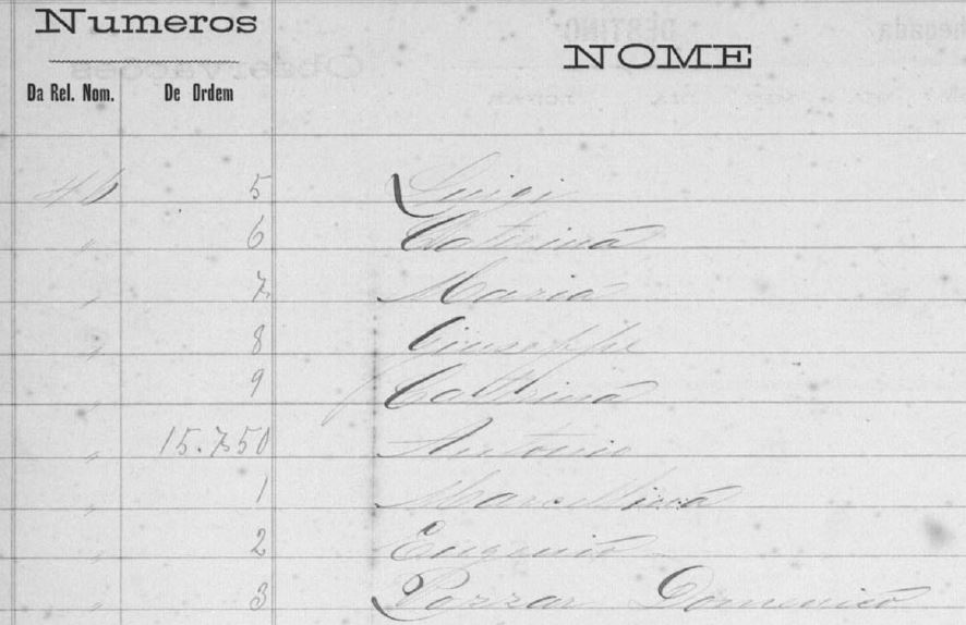 PS: From the register 14.745 (3/4/1885) to 18710 (1/11/1885) there are almost 4000 names, including the immigrants arrived at the Steamship Maria (15246 -15178). As some some names were not clear, I concentrate in transcribing only the names of the immigrants who would travel to work in São Carlos City.
