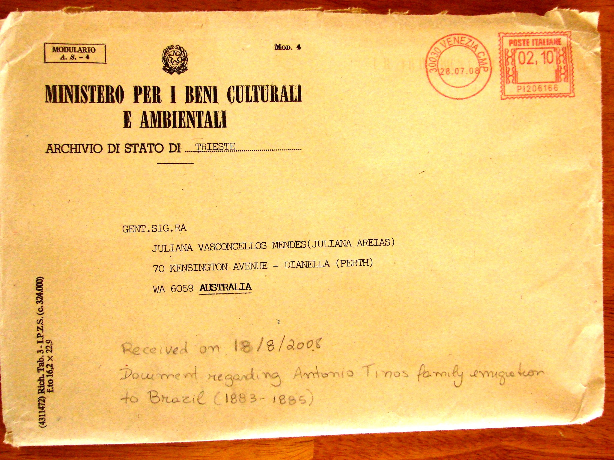 - Antonio Tinos (Anton Tinos) Family’s Immigration Application to Argentina & Luigi Tinos’s (Alois Tinos) exemption of military service request refused in 1883 by the Austrian Empire. / Processo de imigração da família do Antonio Tinos para a Argentina & Pedido de dispensa de serviço militar recusados em 1883 pelo Império Austríaco.