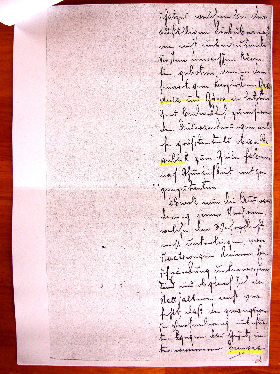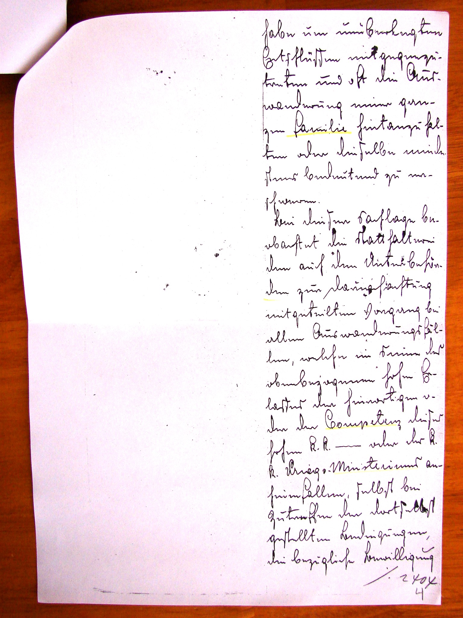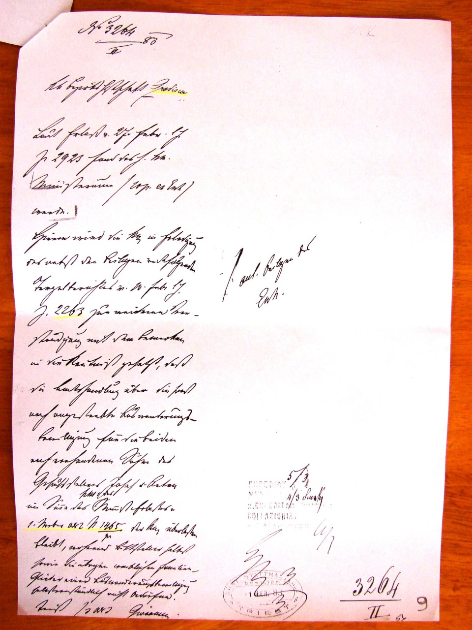 Em resposta ao relatório do dia 18 ( do corrente mes?), numero de protocolo 2404, se comunica ao “ Governo do Imperio Real” que o Ministerio da Defesa Nacional, (ordena) nao se dar seguimento, com base na documentação apresentada, a “solicitacao” de ANTON (Antonio) TINOS de Strassoldo, distrito de Gradisca, em obter a licença do servico estatal austríaco do seu filho ALOIS (Luigi), nascido em 1865, com o objetivo de emigrar para a America. A decisão se deve ao fato de que nos manuscritos comprovando a motivacao do solicitante nao eh possivel encontrar, nem vem junto constatados os necessarios meios de subsistencia para si e para a própria família, nem sao presentes válidos elementos com base nos quais o mesmo (Luigi) possa , com a emigração para a America do Sul, efetivamente encontrar la o desejado melhoramento da própria existência.