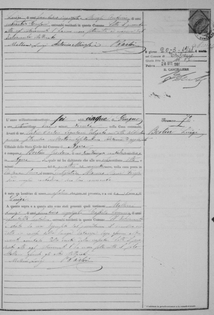 BIRTH CERTIFICATE IN PADOVA, VENETO