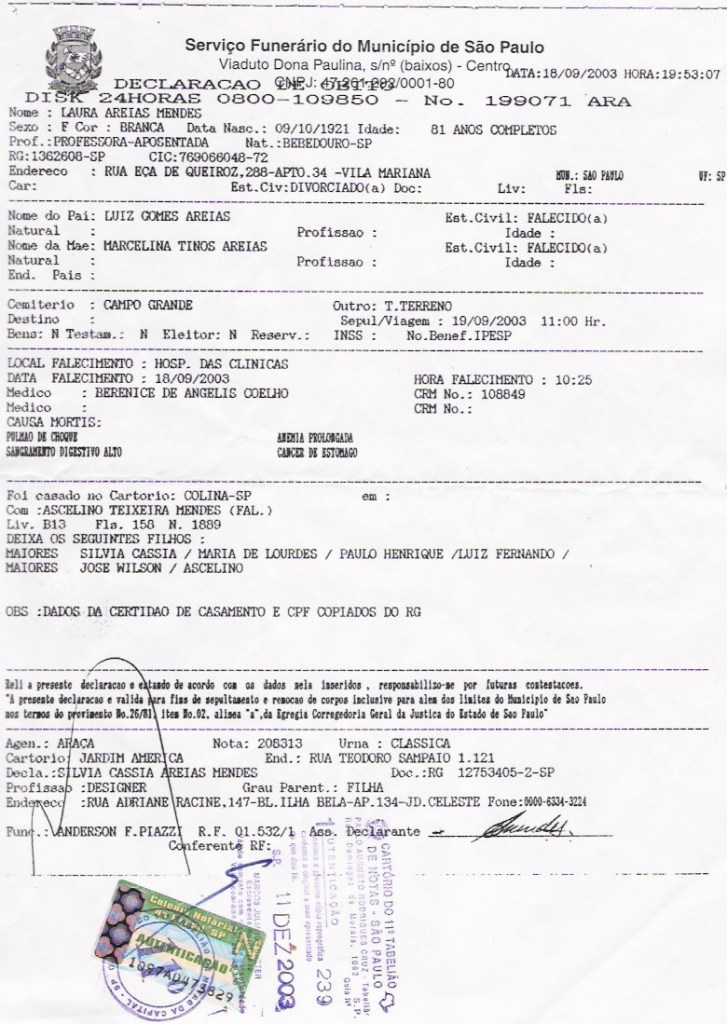 – 3) Maternal – Portugueses, açorianos e mulatos no bairro de Santana em São Paulo (conexão com Açores, Rio de Janeiro e Minas Gerais) – Vasconcellos, Ferreira dos Santos, Nascimento, Pinheiro
